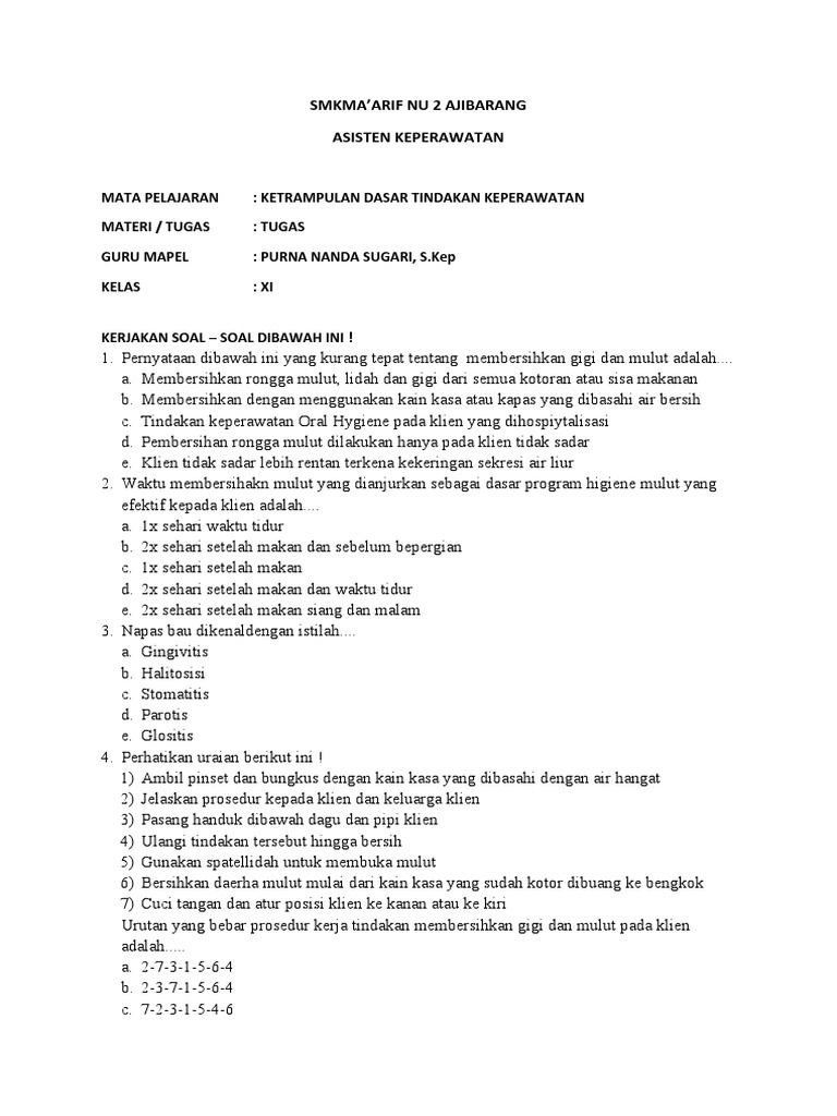 Doc Latihan Soal Un Smk Keperawatan Rinda Nurinda Academia Edu from 0.academia-photos.com Soal matematika smk kelas 12 semester 2 guru ilmu sosial : Berikut alat dan bahan pembuatan bingkai foto dari limbah kardus bekas berbentuk persegi kecuali a. Soal matematika smk kelas 12 semester 2 guru ilmu sosial : Soal matematika kelas 12 smk beserta jawabannya : Tim kami kali ini akan menyediakan contoh soal uas matematika kelas 12 semester 1 sebanyak 30 butir yang kami rangkum dari berbagai penerbit buku untuk siswa pelajari dalam persiapan ulangan harian maupun. C 2) berikut ini yang tidak termasuk criteria kualitas asuhan keperawatan adalah: Sudut yang biasa digunakan adalah. Nov 10, 2015 · pada kesempatan kali ini akan kami bagikan kumpulan soal uas / ulangan akhir semester 1 (ganjil) kelas 11 / xi sma / ma mapel lengkap.